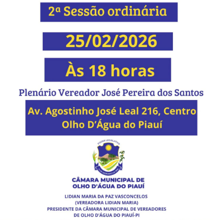 Cmara Municipal de Olho Dgua do Piau realizar 2 Sesso Ordinria